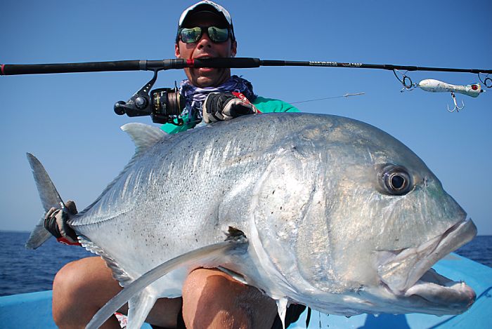 Stiamo parlando di pesca a popper bocca larga tropicale, una tecnica estremamente stressante per la meccanica di questi mulinelli a bobina fissa top di gamma.